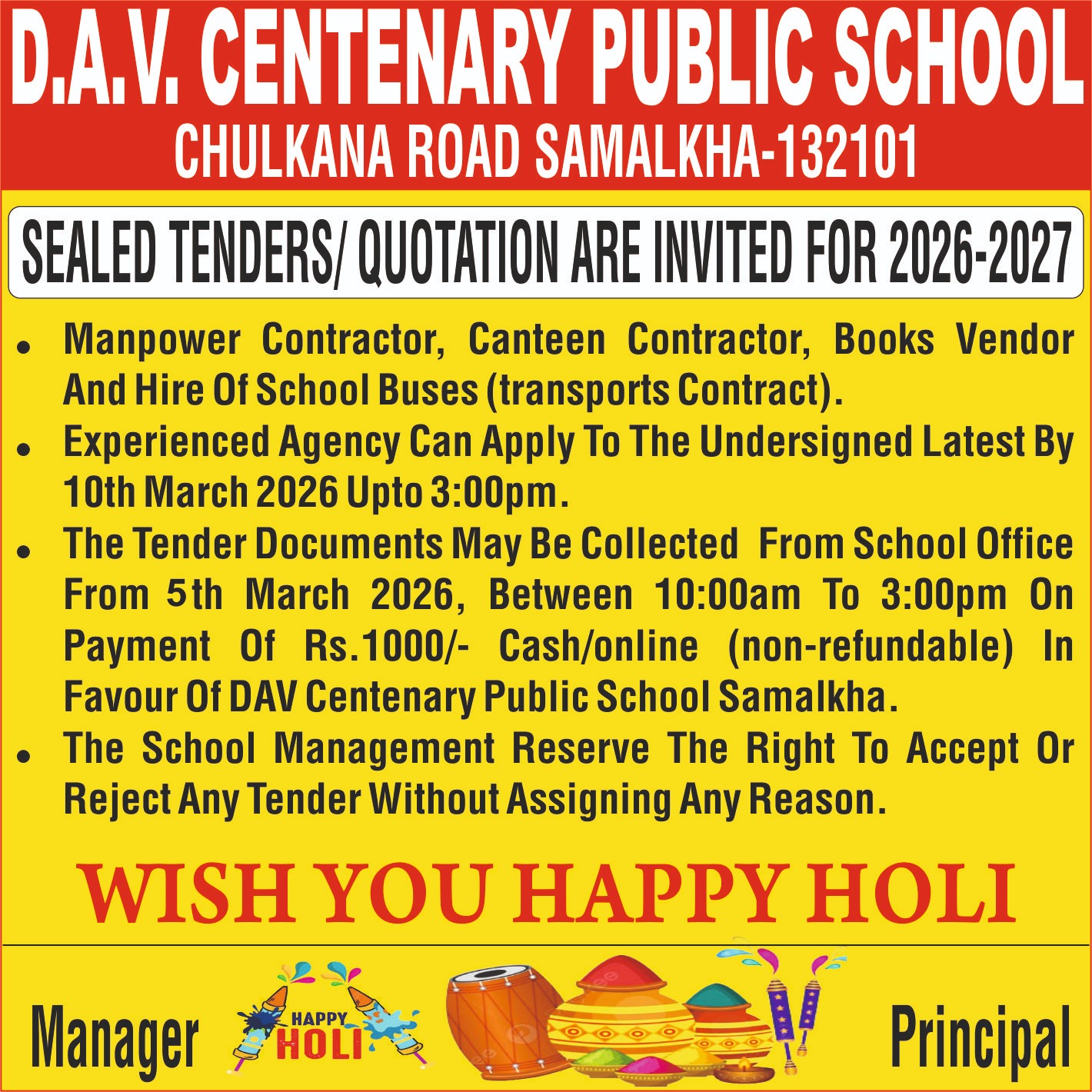 DAV CENTENARY PUBLIC SCHOOL, SAMALKHA CHULKANA ROAD, SAMALKHA, PANIPAT, HARYANA-132101 E-Mail: davsmk@rediffmail.com Phone: 0180-2572559 Website: www.davsamalkha.com